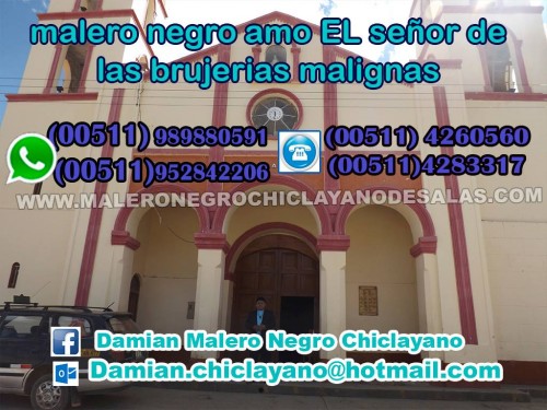 (00511)989880591 BRUJERIA GRATIS EN EL AMOR MALERO NEGRO,AMARRES,HECHIZOS Y CONJUROS –AMARRES ERA TU ESPOSA (O), NOVIA (O) AMANTE, ¿COMPARTIA TU CAMA? AHORA IMAGINATELA (O) DEBAJO DE LAS SABANAS CON OTRO (A) ¿DEJARAS QUE COMPARTA SU INTIMIDAD CON OTRO (A)? ¿DEJARAS QUE SE QUEDEN LO TUYO? NO….ACTUA YA ANTES QUE SEA TARDE. SI SE LO (A) LLEVARON CON BRUJERIA O MALAS ARTES, YO TE LO (A) REGRESO SI TU LA ALEJASTE POR TU ERRORES NO IMPORTA YO LO REGRESO.