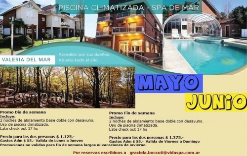 Piscina Climatizada- Spa de Mar. Escapadas a precios increíbles, aprovecha y disfruta de un fin de semana, o tambien en semana, como vos elijas, y festeja la vida, tomando un relax de cuerpo y mente. Hace tu consulta, te esperamos!!!